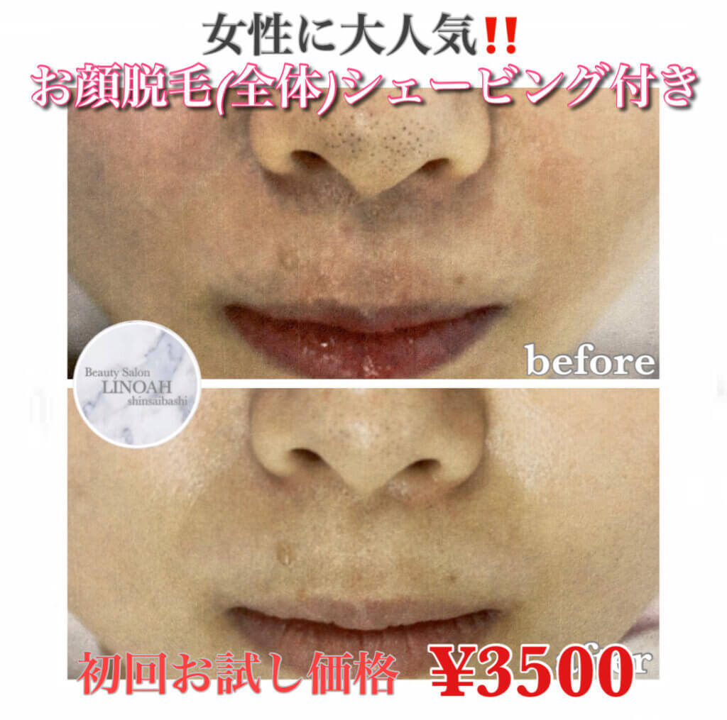 人気No.1顔脱毛(全体)シェービング付き¥9680→¥3500