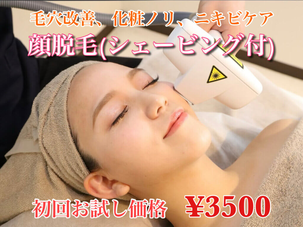 人気No.1顔脱毛(全体)シェービング付き¥9680→¥3500
